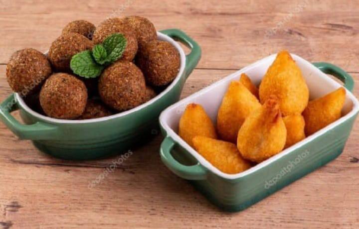 20 unidades de mini coxinha, podendo variar nos sabores: frango, queijo e presunto.